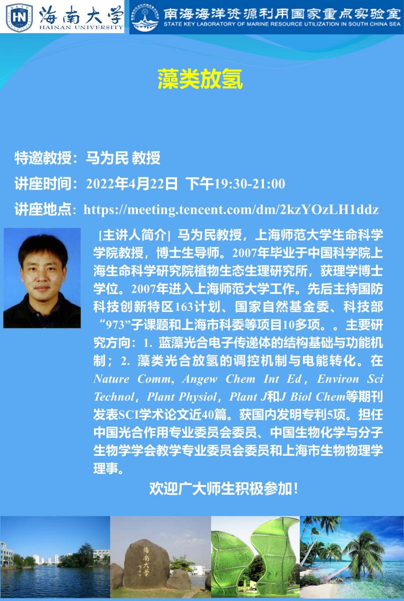 On April 22, 2022, Professor Ma Weimin from Shanghai Normal University was invited to give a lecture titled "Algal Hydrogen Production" to the teachers and students of SCBE. During the lecture, Professor Ma shared his research group's accumulation of work over more than ten years in the field of algal hydrogen production and a series of innovative research achievements. Combining his research work experience, he (referred to as Teacher He in text, likely a typo for Ma) shared small stories from his research process and conducted extensive and in-depth exchanges and discussions with teachers and students on issues regarding experimental topic selection, design, and technical operations. Colleagues from the Institute of Botany, Institute of Oceanology, Qingdao Institute of Bioenergy and Bioprocess Technology, Yantai Institute of Coastal Zone Research of the Chinese Academy of Sciences, and Shanxi University also listened to Professor Ma's report.